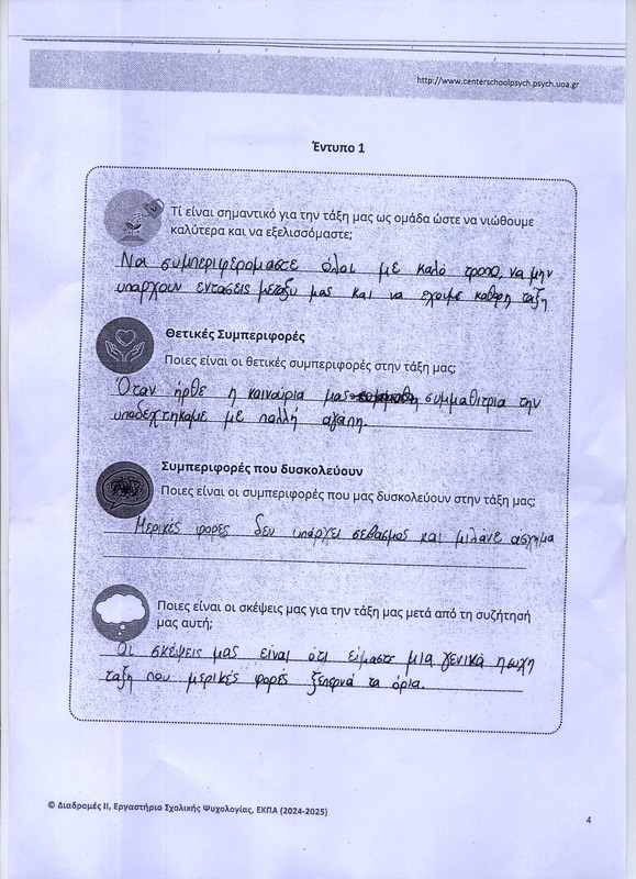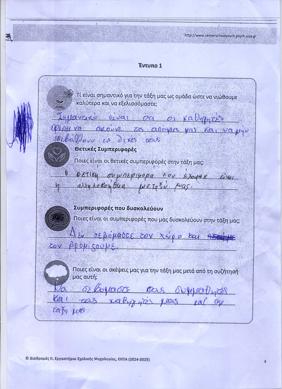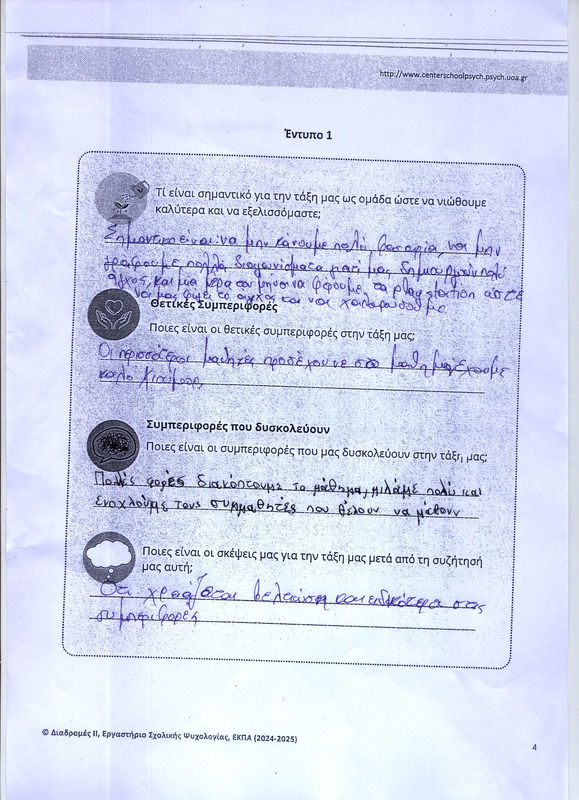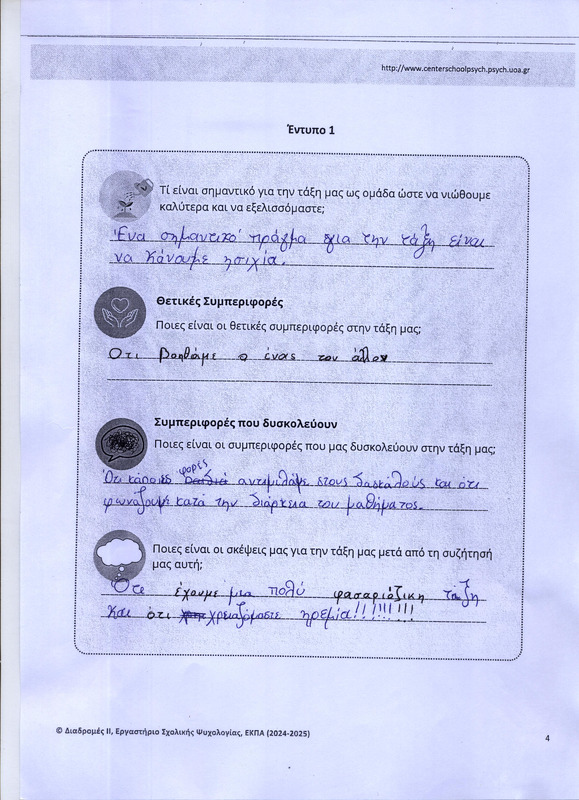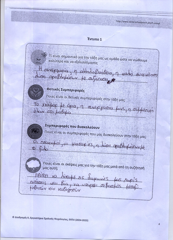 Οι μαθητές εντοπίζουν τι τους αρέσει αλλά και τι τους ενοχλεί στις συμπεριφορές των συμμαθητών τους αλλά και των καθηγητών τους στην τάξη